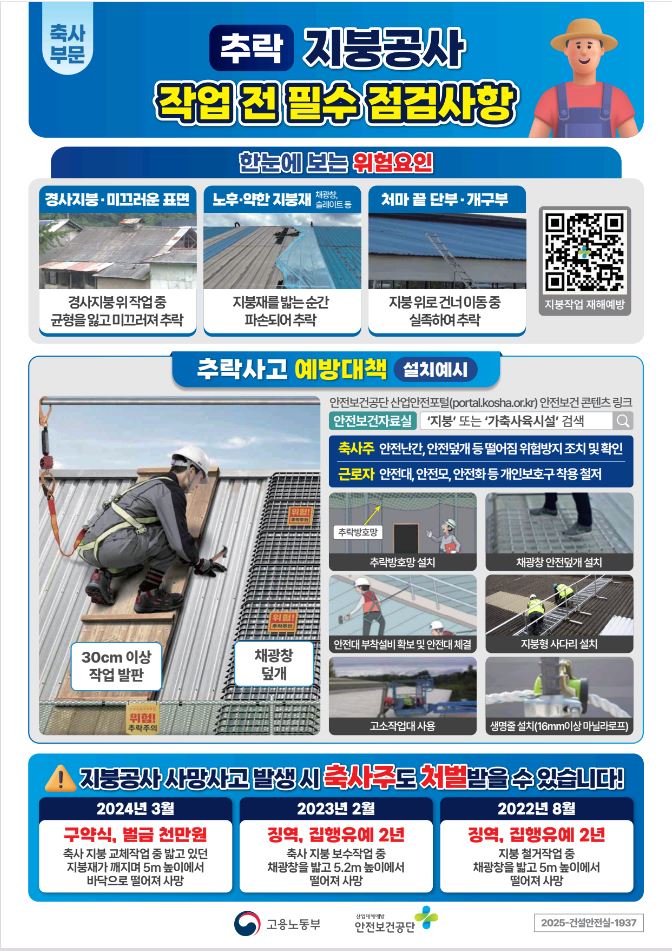 [추락] 지붕공사 작업 전 필수 점검사항 작성자최고관리자 (114.203.149.40) 등록일2025-12-16 조회수 108 본문 목록 PREV 등록된 게시물이 없습니다 NEXT 지게차 재해예방 동영상